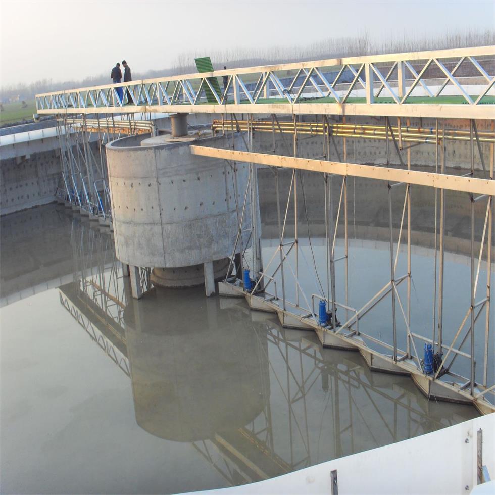 通过减速驱动和悬挂式组件的传动,由刮板将污泥刮集到中心集泥槽,依靠静水压力或泵排出池外。采用中间进水和排泥,周边排水,保证水流均匀。利用液位差自吸式排泥,有浮渣刮集排除装置和过载保护装置。