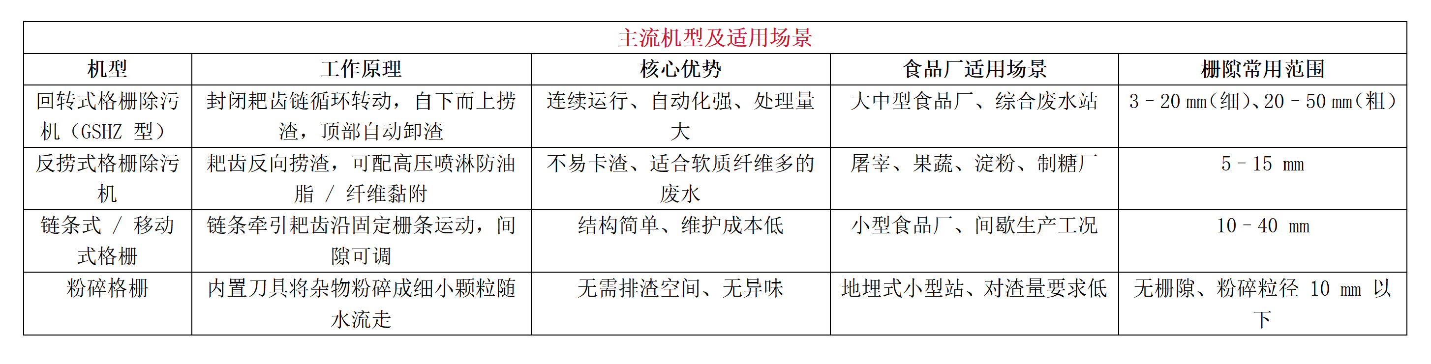 - 常见故障:卡渣→检查是否有大块硬物,优化反转程序 / 栅隙;耙齿磨损→及时更换,优先同材质耐磨件;电机过载→排查扭矩保护参数、清理缠绕物。